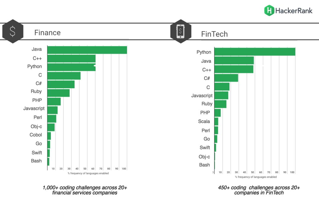 在Fintech就业市场,Java,JavaScript,C++,C#,Python和SQL的编程技能需求量很大。能够开发移动应用程序、网站和全栈平台的高技能软件工程师,对于创新的Fintech行业至关重要。