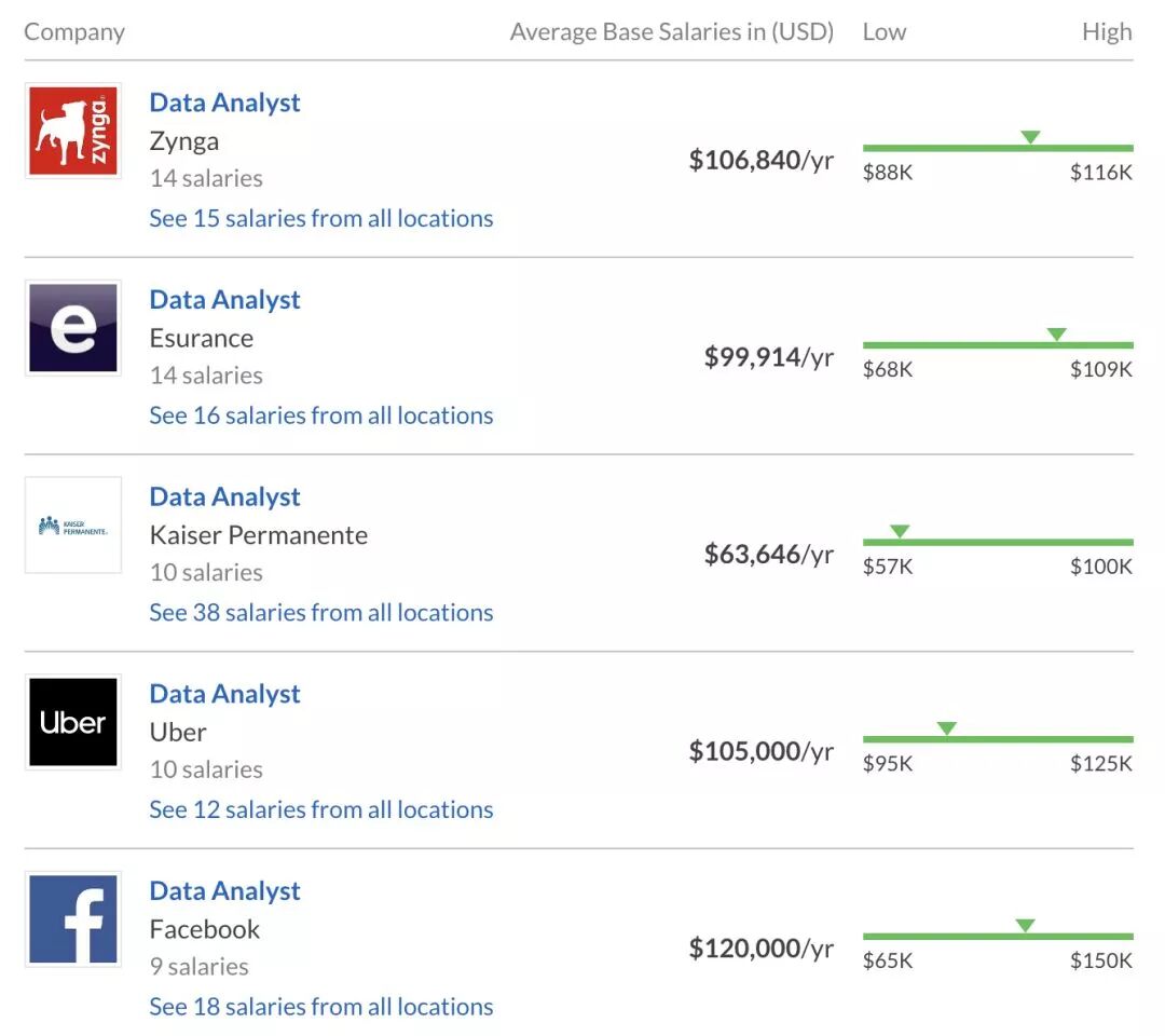 数据分析师SQL, Python, R这样的数据处理硬技能, 也需要对商业有好的理解, 在纽约和硅谷地区的平均薪资已经达到了10万美金/每年, 作为毕业后进入业界的第一份工作,是一个很好的选择。