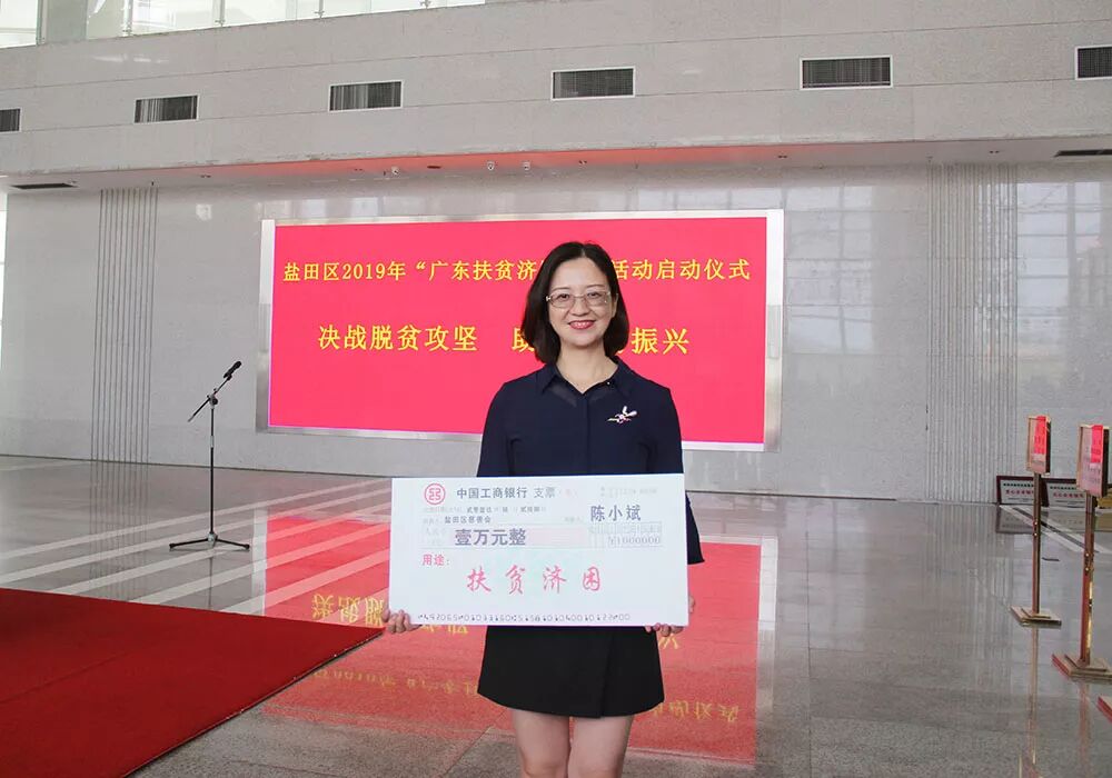 6月28日下午,盐田区举行“广东扶贫济困日”活动启动仪式,并现场为辖区爱心企业、爱心人士颁奖。盐田区委副书记、区长杨军,区人大常委会主任梁景海,区政协主席武威,以及区法院、区检察院相关领导出席启动仪式并带头捐款。集团总裁陈小斌作为爱心人士,为此次活动捐款1万元,并被现场授予爱心人士奖牌。