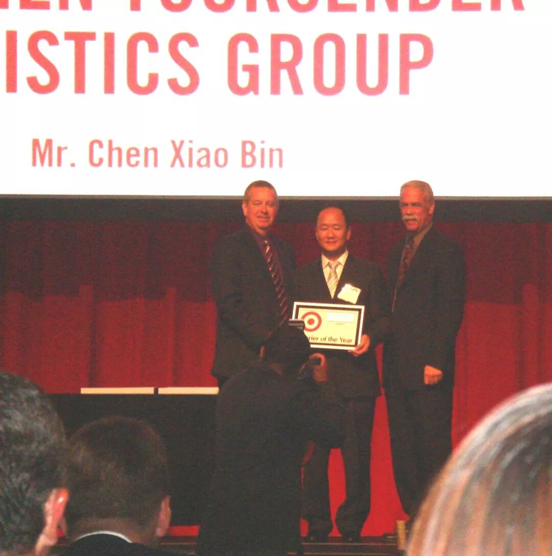 2008年,有信达集团总裁陈小斌亲赴TARGET总部领取“2007年度运输供应商奖”