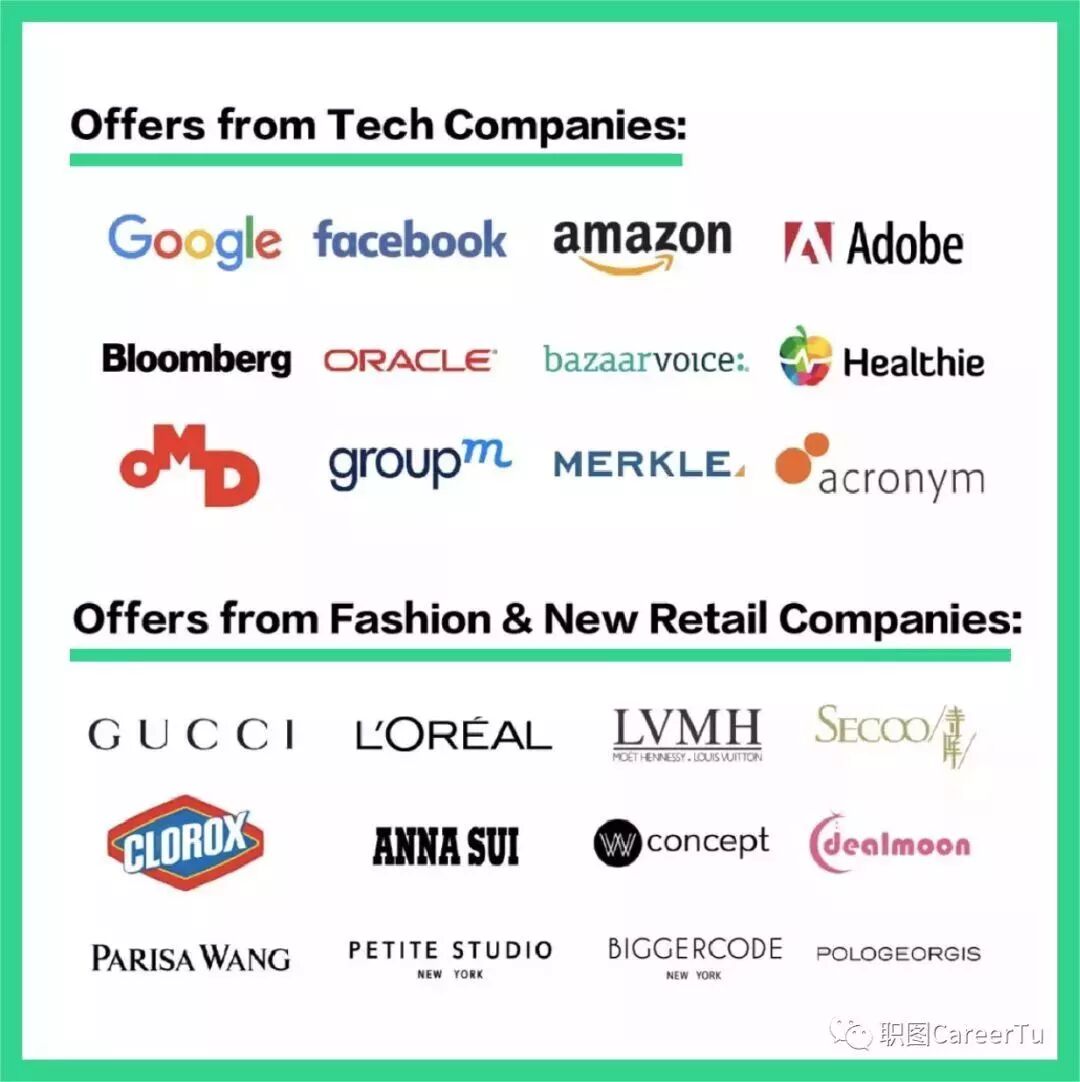 职图拥有强大丰富的互联网科技企业资源,合作企业覆盖中美两国,遍布纽约、波士顿、华盛顿、旧金山、西雅图、北京、上海、香港等城市,我们将会根据学员的擅长领域及个人兴趣,以及求职定位项目结果,精准地为你匹配合适企业及岗位内推。
