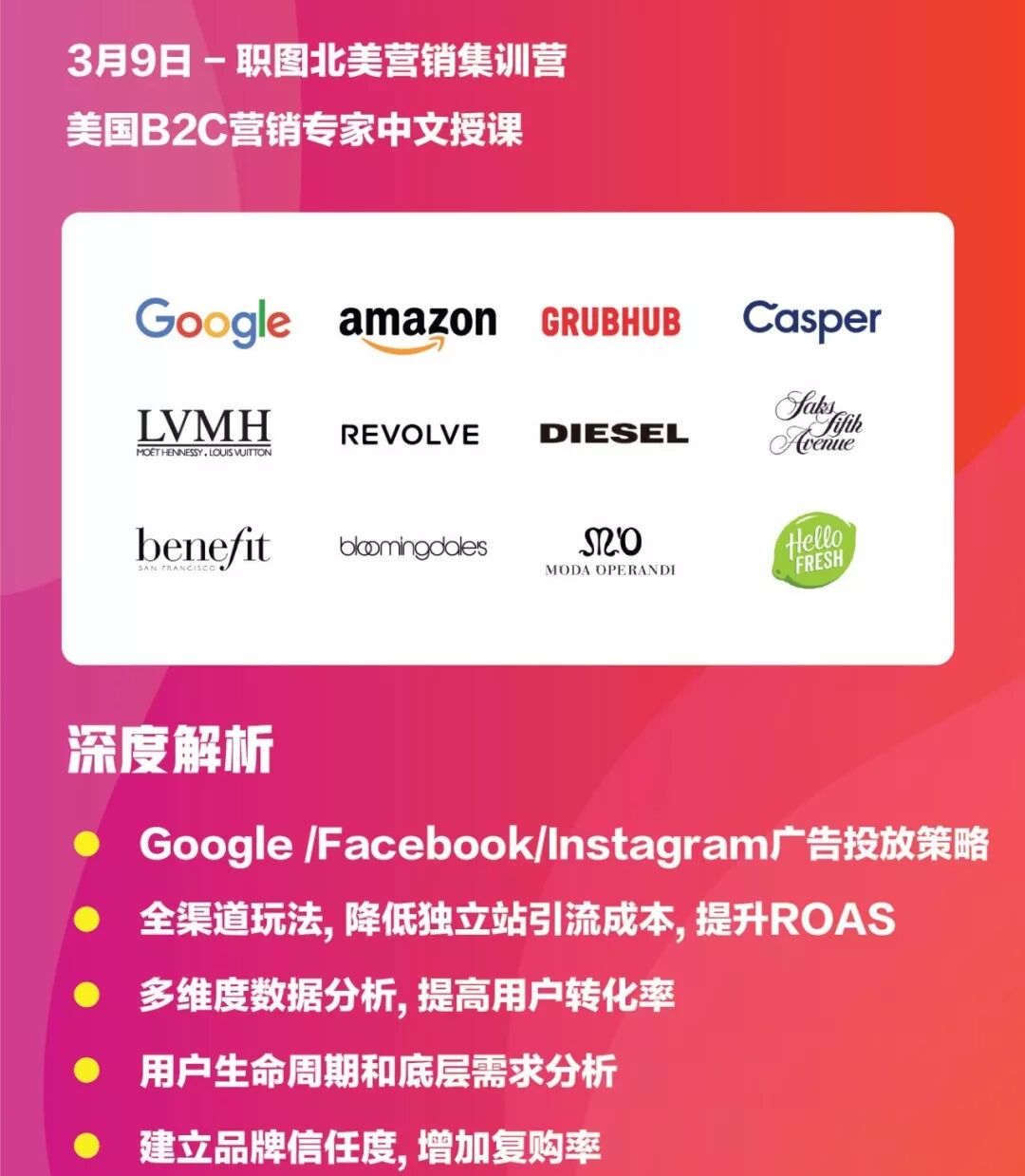 对于Fashion/E-Commerce/互联网营销感兴趣的同学,希望通过集训营课程的学习,帮助你在最短的时间内了解Fashion Marketing领域的各个职能细分与自己的匹配度,为转型打下扎实的基础
