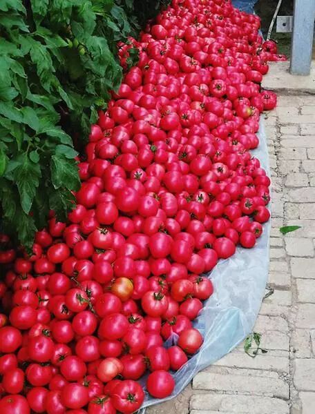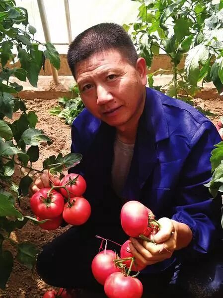 李康定正在采摘蚯蚓西红柿