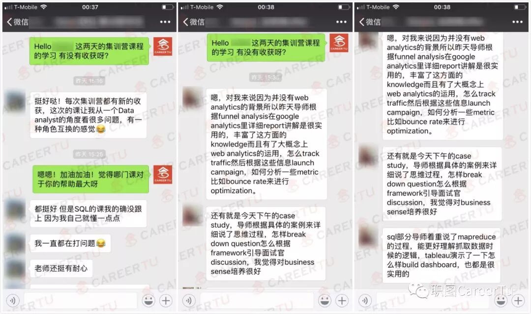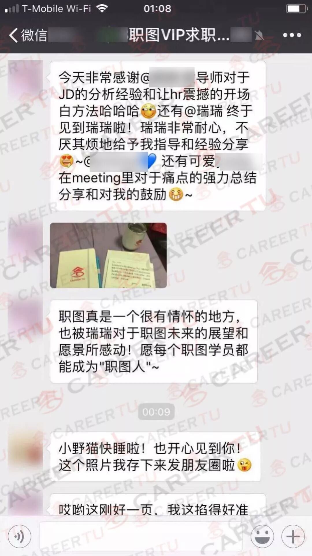 上个月N学员来到职图办公室参加Open Day的时候,还非常焦虑,担心自己拿不下面试。和教学组的导师们针对自己的求职近况和难点进行了深入交流。教学组导师们的分析,让N同学很有启发,回家后还发了朋友圈感谢!