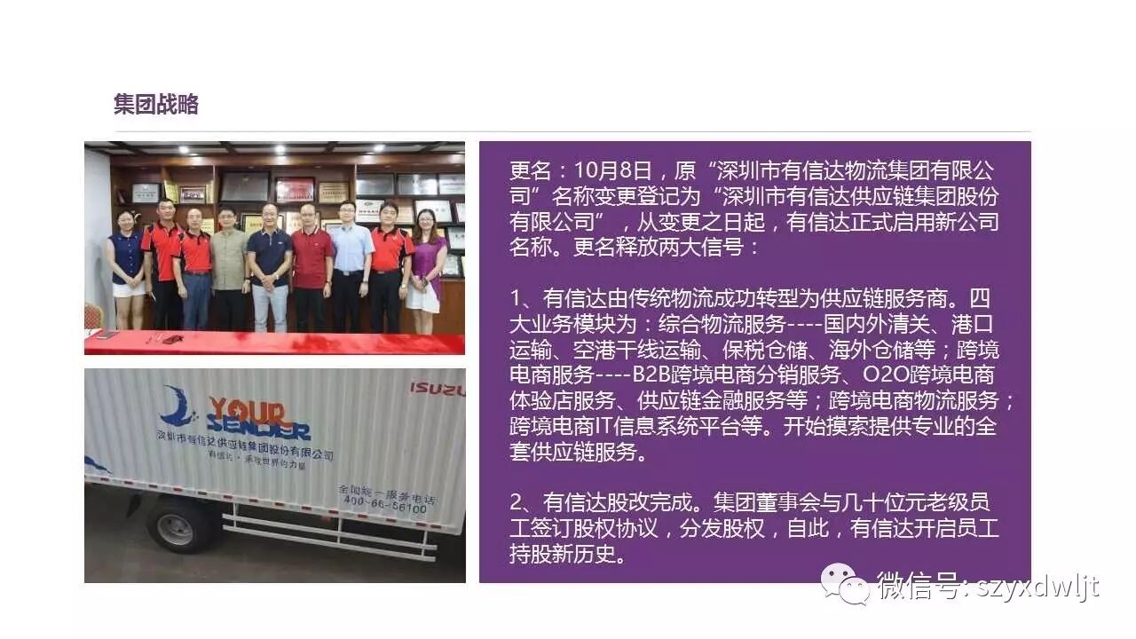 深圳市有信达供应链集团股份有限公司创立于1997年,总部位于深圳盐田,经过23年的发展,有信达集团已发展成为融合智能信息系统、综合物流、跨境电商、产业园、教育培训、供应链金融六大业务板块的知名企业。