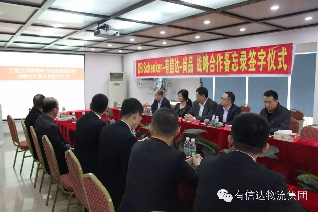 DB Schenker华西区总经理姜佩华、华西区项目总经理王文光、跨境电商发展主管汪洋,尚品网副总裁李铭、商务副总监王大明,有信达集团总裁陈小斌以及集团的相关部门负责人出席签约仪式。