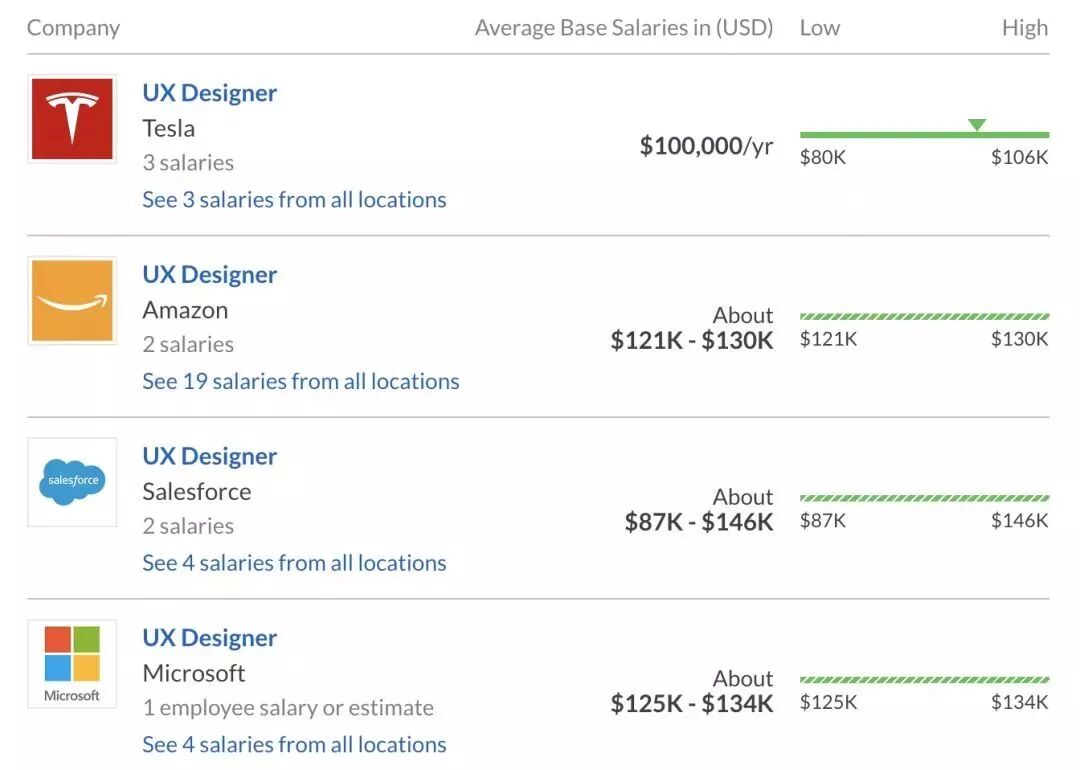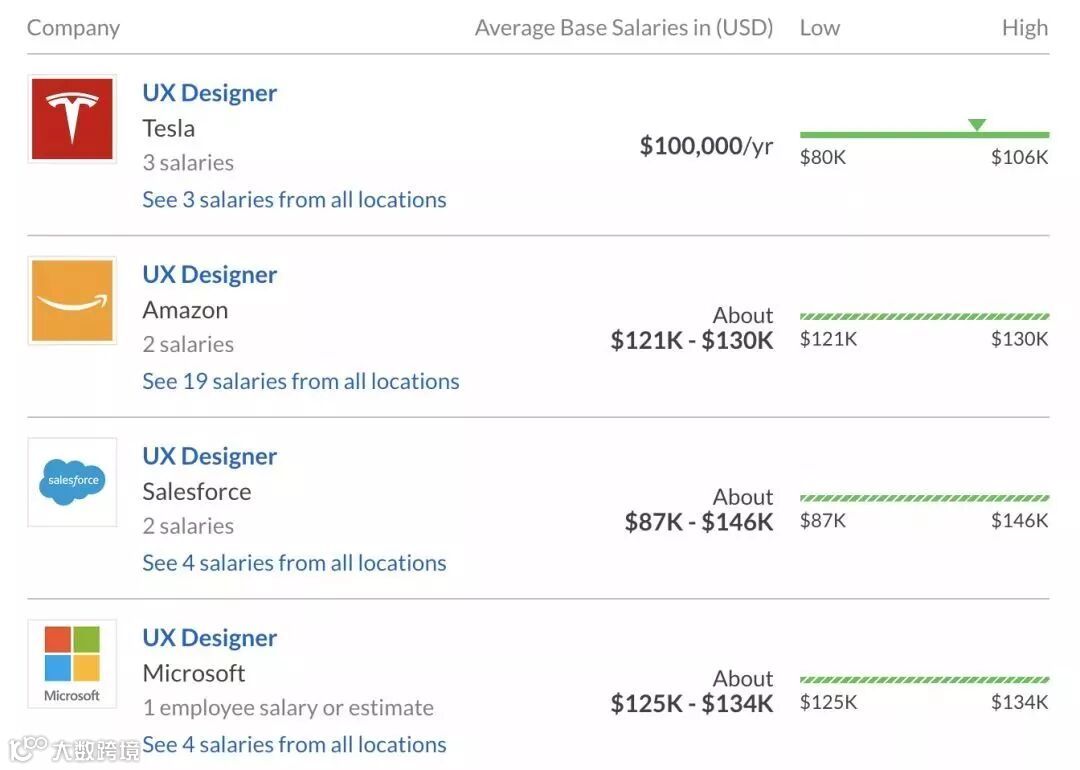 行业发展快, 很多学校没有直接开设UX/UI设计专业, 不少转行进入的理科或者商科设计师, 大多具备更强的优势,是比美术功底更重要的商业知识, 数据读取, 以及逻辑思维。有一定经验的UX/UI设计, 在纽约和硅谷地区的平均薪资已经达到了12万美金/每年, 工作机会也持续增加。