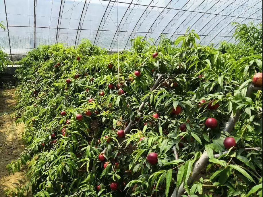 展会和优质的蔬菜种植企业合作,企业可以整租整个大棚,也可按垄租种。如今3号棚里集中展示桃树“一边倒”栽培技术,是一项通过合理的密植、矮化、早产而极高产栽培方法的新技术。