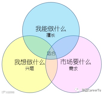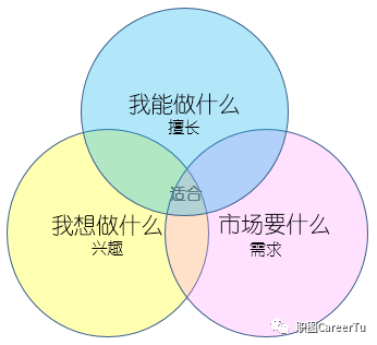 很多同学都会忽略求职定位这一步,认为这个并不重要,只要自己Follow当下最热的职业方向,就能拿到高薪的工作。实际上,那些热门高薪的职位,不一定适合你自己。错误的定位,会让你浪费掉求职时间,事倍功半,让你的士气也会受到打击。 你自己擅长的,你感兴趣的,市场需求三者交叉的区域,就是你可以去定位的方向。
