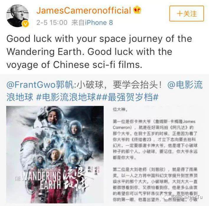 像《流浪地球》的成功一样,我们求职上的成功,也一定离不开我们对自己专长和兴趣的精准定位,离不开吴京这般能够给予帮助和支持的前辈的引导,更离不开我们自己对梦想的追求,和技能上不断的提高和锻炼。
