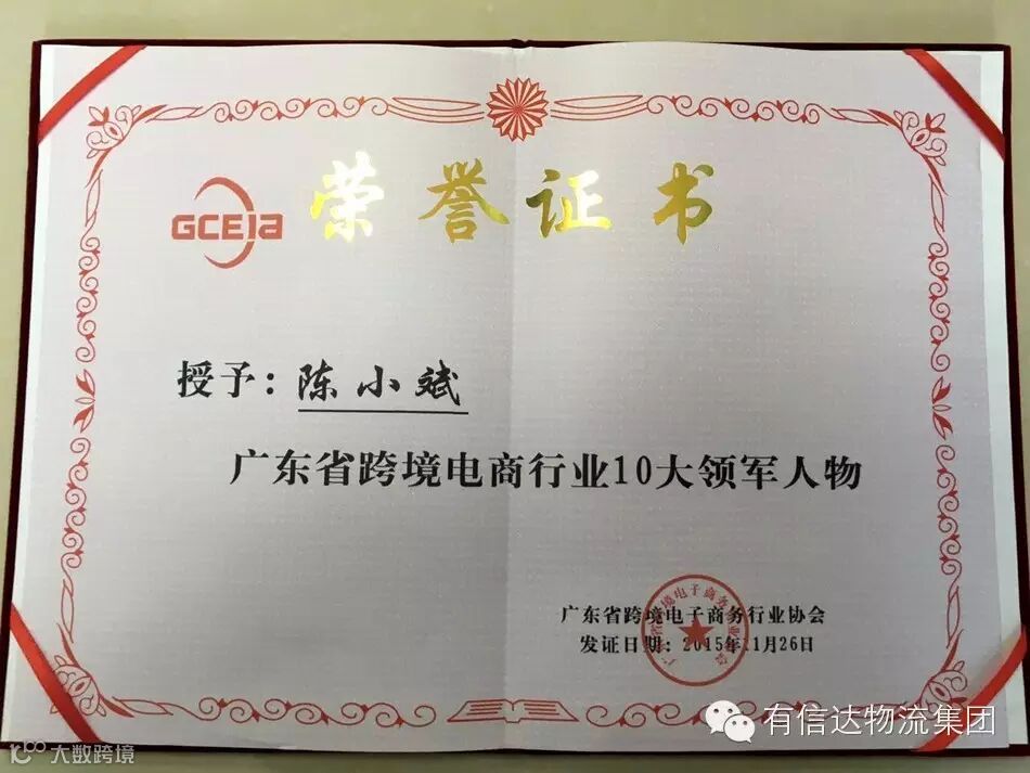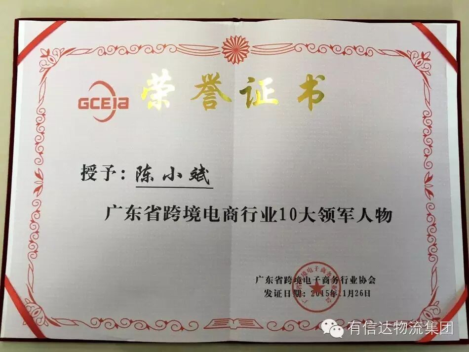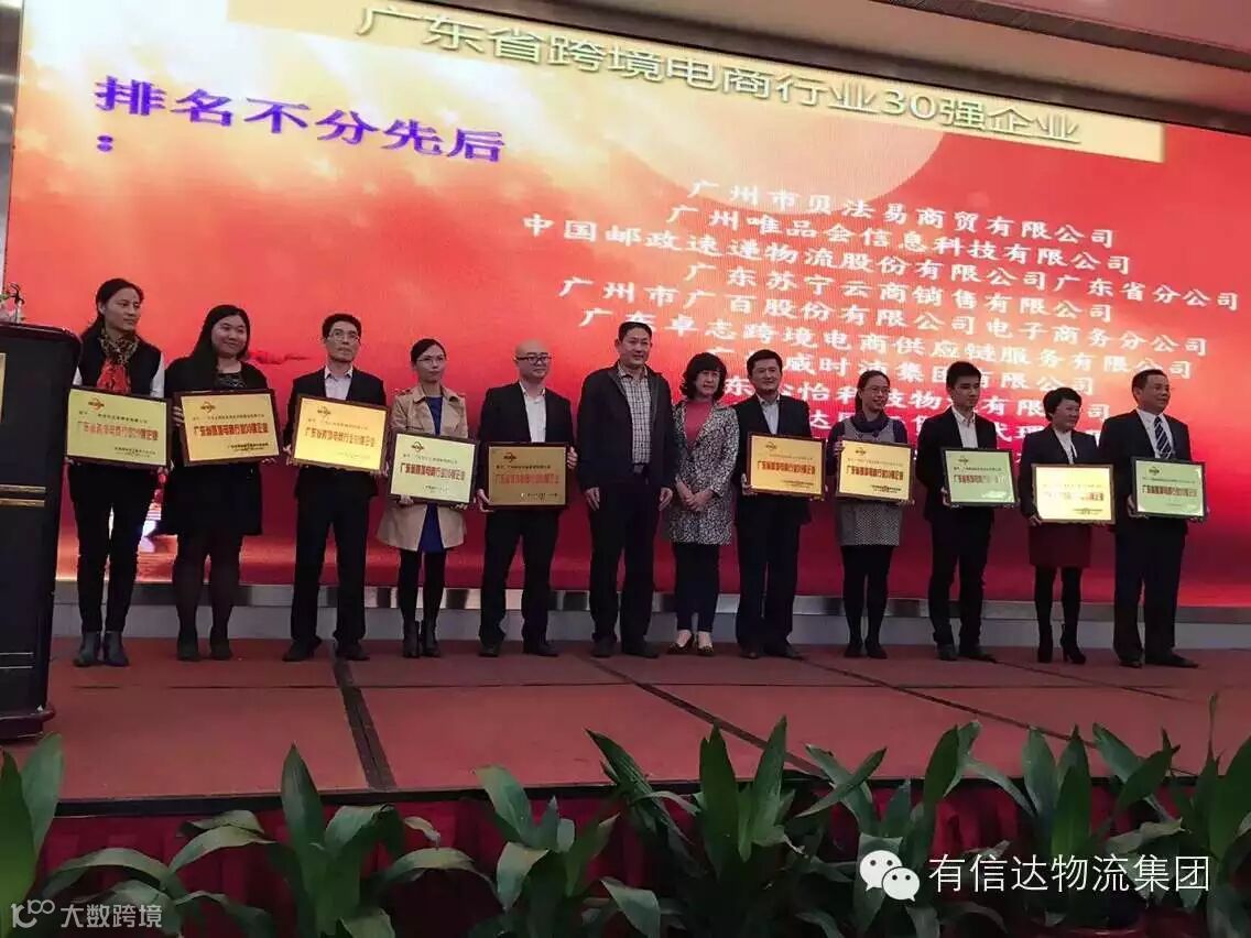 大会上,有信达集团董事长陈小斌和广州市有信达国际货运代理有限公司分别被授予“广东省跨境电商行业10大领军人物”和“广东省跨境电商行业30强企业”荣誉。