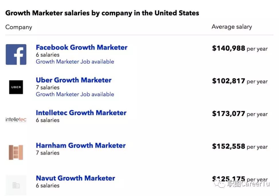 所以公司愿意为他们支付高薪, 平均年薪14万美金, 也是出了名的愿意赞助H1B签证, 只要你能给公司做增长赚钱, 啥都好说。他们也有很强大的话语权. 而且对于这样一个新兴的, 用结果说话的职能, 往往是英雄不问出路的, 有一个被Google收购的公司就爆料, 他们常常有Unpaid Intern迅速做成了VP of Growth Marketing, 颇有谁能赚钱, 谁能掌权的架势。