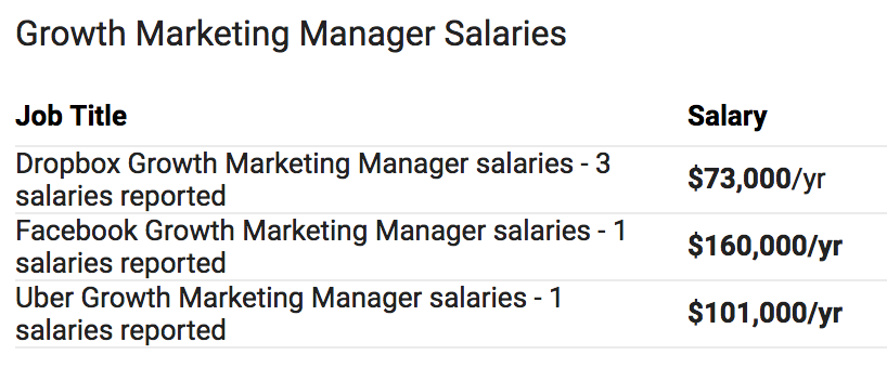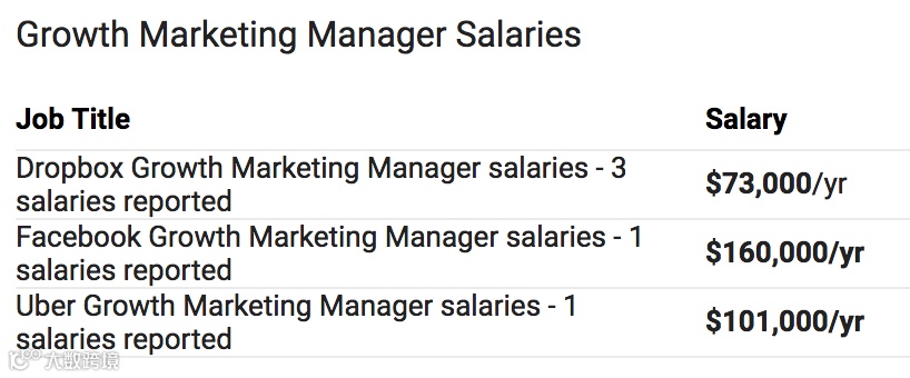 而在Facebook,Uber,Dropbox工作的Growth Marketing Manager可以达到10万美金的年薪。