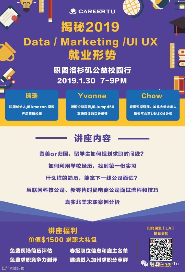 职图2019年首次来到加州举办公益讲座,非常期待和加州的同学们面对面交流!座位有限,赶快报名参加吧!