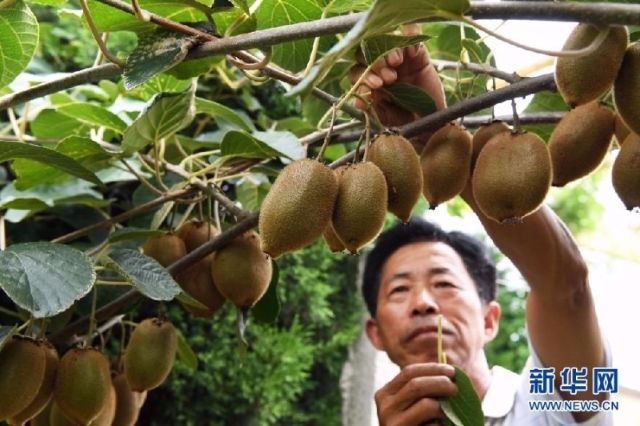 在河南省南阳市赤眉镇伏牛山农业合作社的猕猴桃种植基地,一种高达5米的猕猴桃树硕果累累,这种叫“新双层”的栽培技术是企业2014年参加杨凌农高会的收获。
