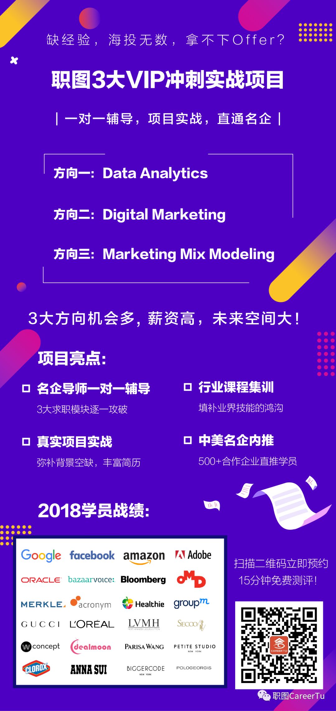L同学参加的是职图Digital Marketing VIP求职项目,通过参加Digital Marketing集训营,了解到了很多业内第一手信息,夯实了专业知识,尤其是Paid Search和Paid Social方面的知识和实战操作能力,这也是她现在拿下的Offer职位最主要的职责。