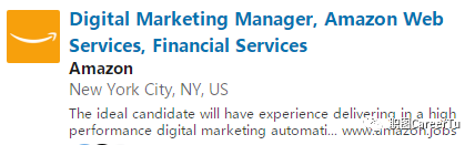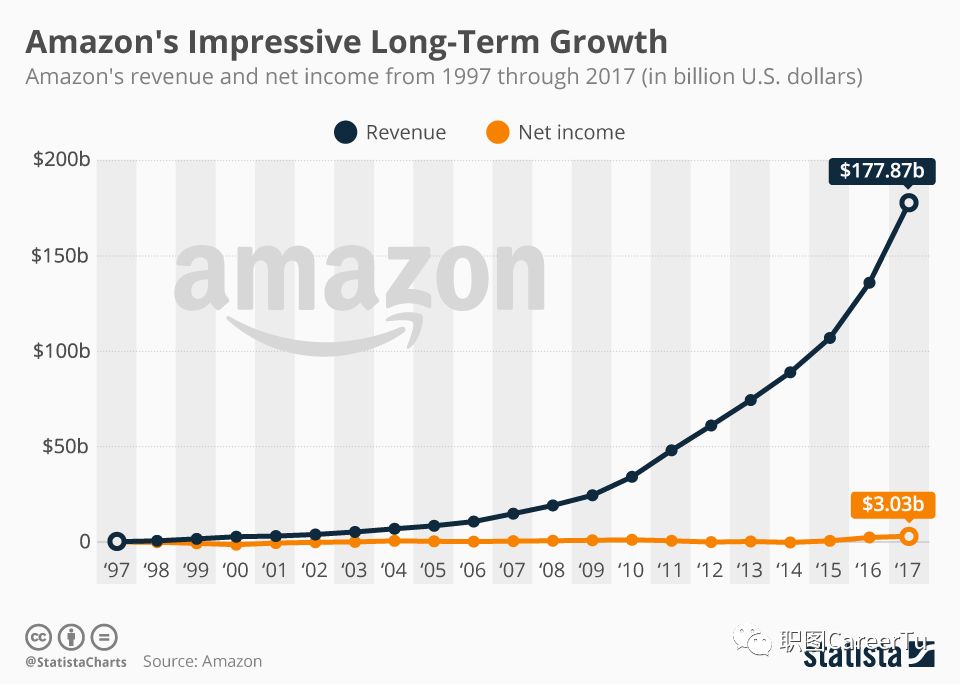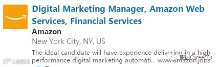 去年,Amazon宣布过将在纽约Hudson Yard办公室新招聘2000个职位, 后来又设置第二总部,更是多了5万个新的工作机会。其中不发高薪职能包含Digital Marketing, Marketing Analytics, Product Marketing等领域,薪资平均数在10w+。