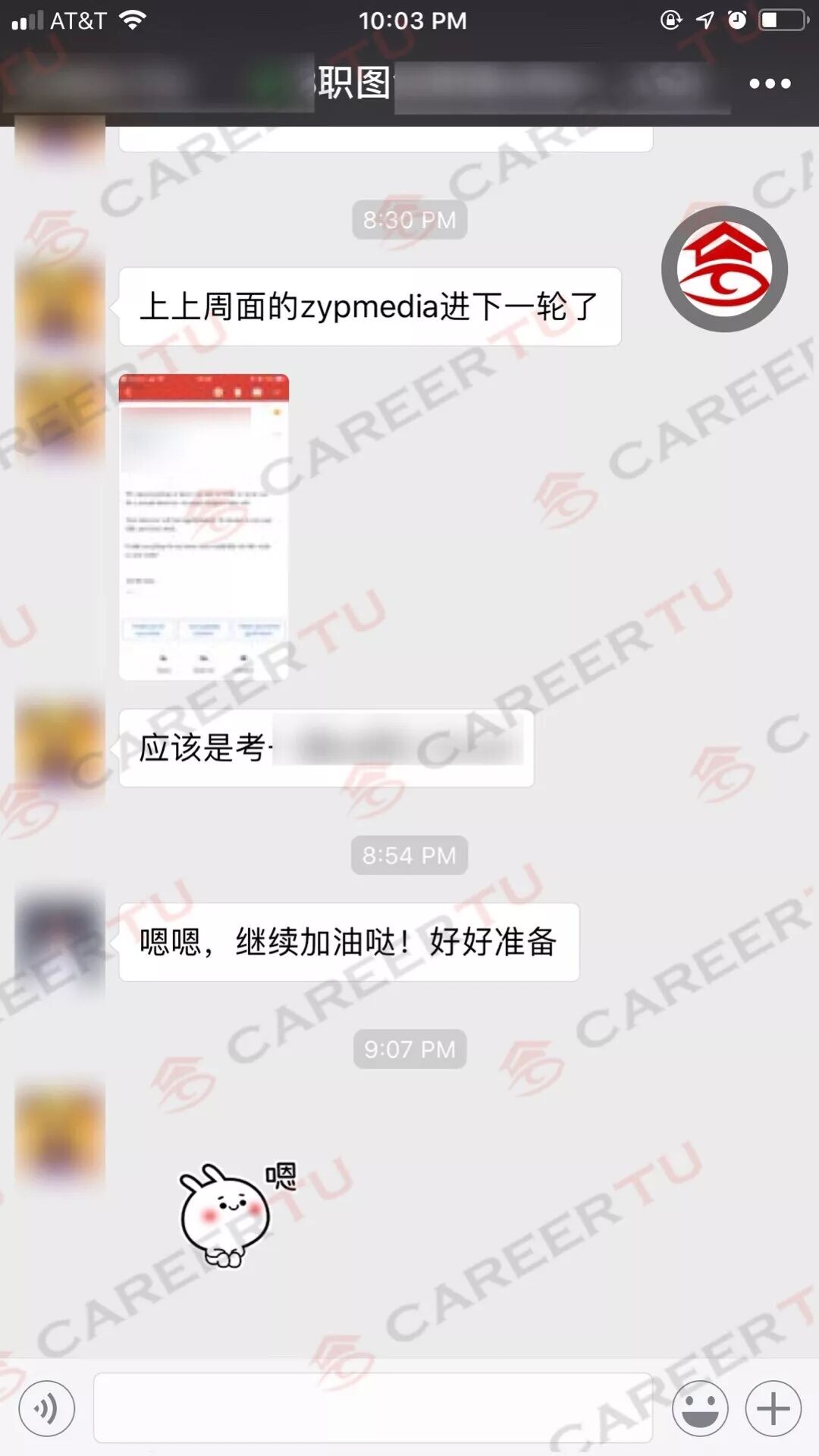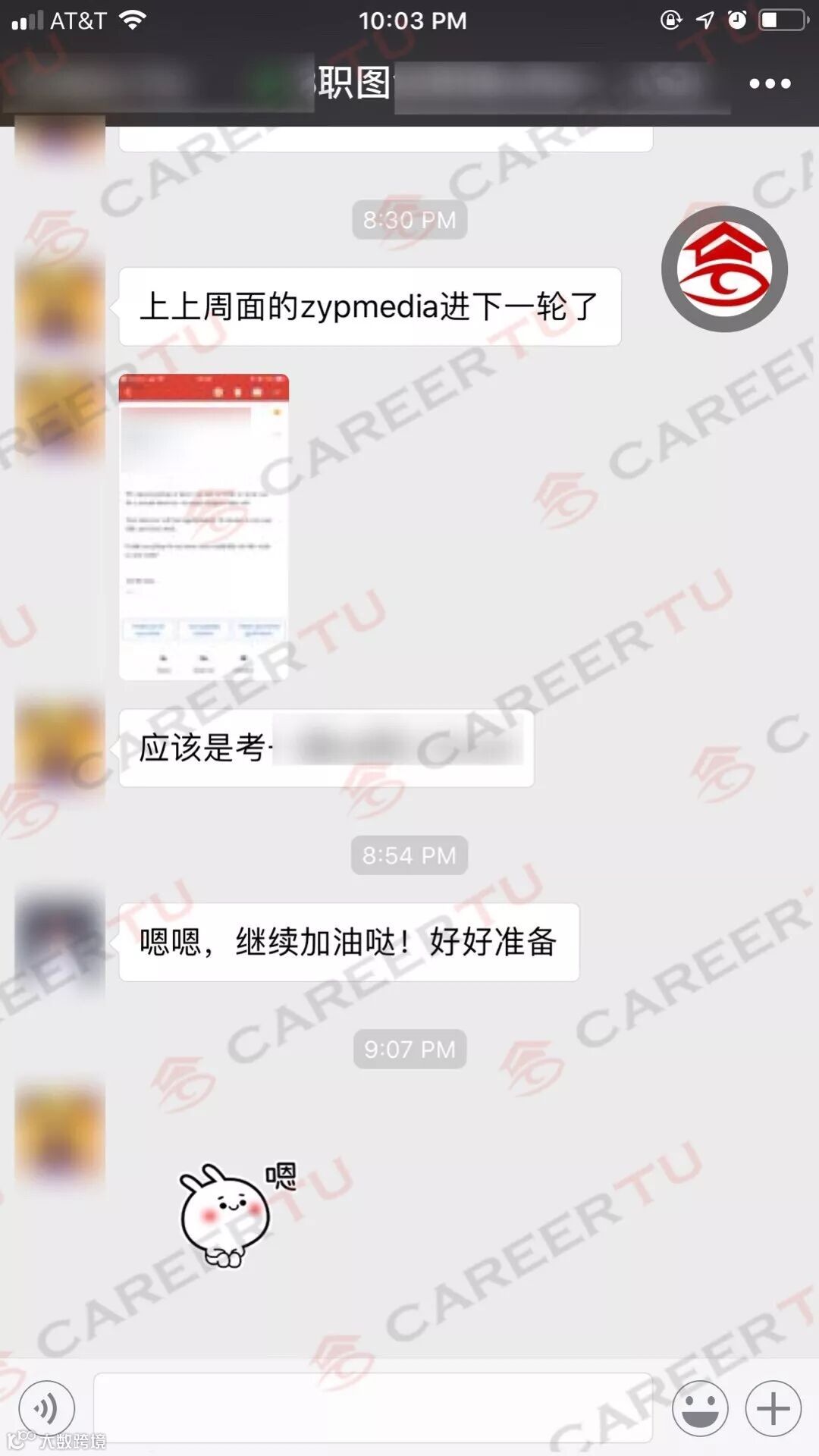 祝贺职图保Offer的项目学员F顺利进入Zypmedia第二轮面试!学员F加入项目后,职图为其精准定位,匹配行业资深导师,在多次一对一简历精修和模拟面试课程后,学员F对求职的方法和技巧有了新的理解,并且在模拟面试环节,在教学组的指导下积极准备,最终顺利拿到Zypmedia的第二轮面试邀请。希望学员F好好准备,期待接下来的表现!