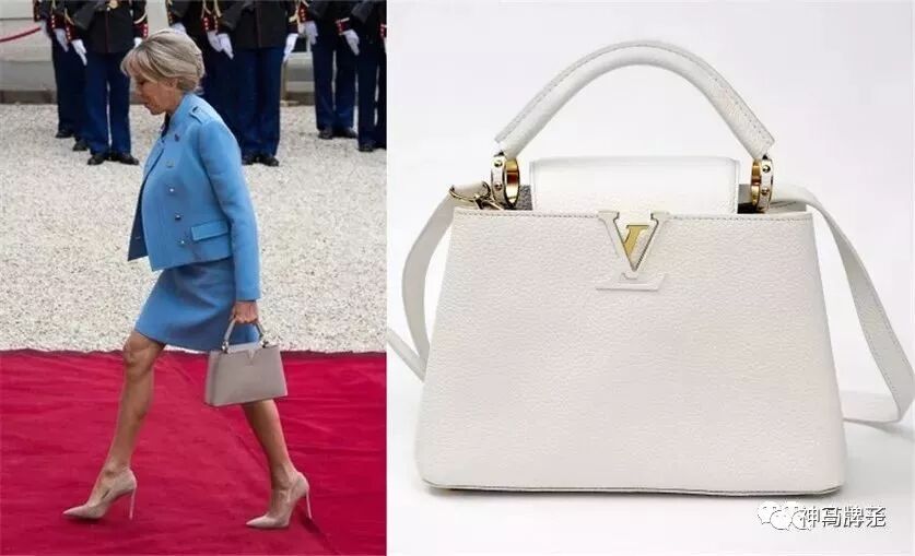 而LV忠粉的现任法国第一夫人布丽吉特,最宠爱的LV Capucines,皮质硬挺,Logo的镂空设计比较新颖,整体上看也是hin有高端感的款式。