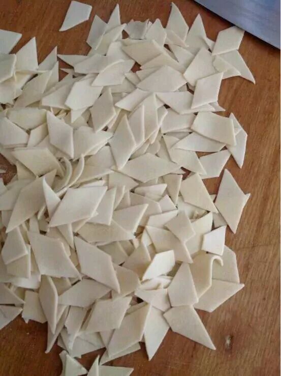 也有叫“奇花面”的。因它碗上飘的五颜六色似花非花,故曰“奇花面”;也有叫“七花面”的,因它所用的鸡蛋花、葱花、带片等都切成像小旗子一样的平行四边行或三角形,故而得名“旗花面”。