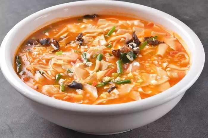 文火慢烧,汤要清亮。再加上各种调料,保持味清,面软、汤煎、醋酸。