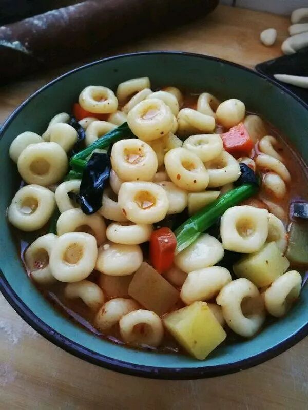 窝窝面是陕西所独有的,走遍全国全世界,再寻不下。这“窝窝面”从和面、擀面、切丁到一个个戳成窝窝状,全部都是手工完成,正因如此,才吃起劲道滑溜,回味无穷,忒色滴很!