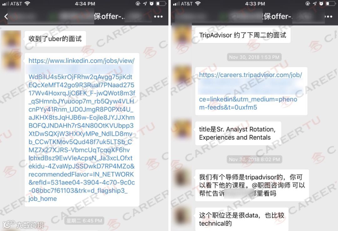 向大家更新最新Uber招聘信息!职图保Offer学员R收到了Uber旧金山总部Business Analyst全职职位的面试邀请,投递了相关职位的小伙伴,你的面试Offer说不定也在路上!不仅如此,该学员在项目辅导下,还拿到了TripAdvisor Sr. Analyst的面试邀请。