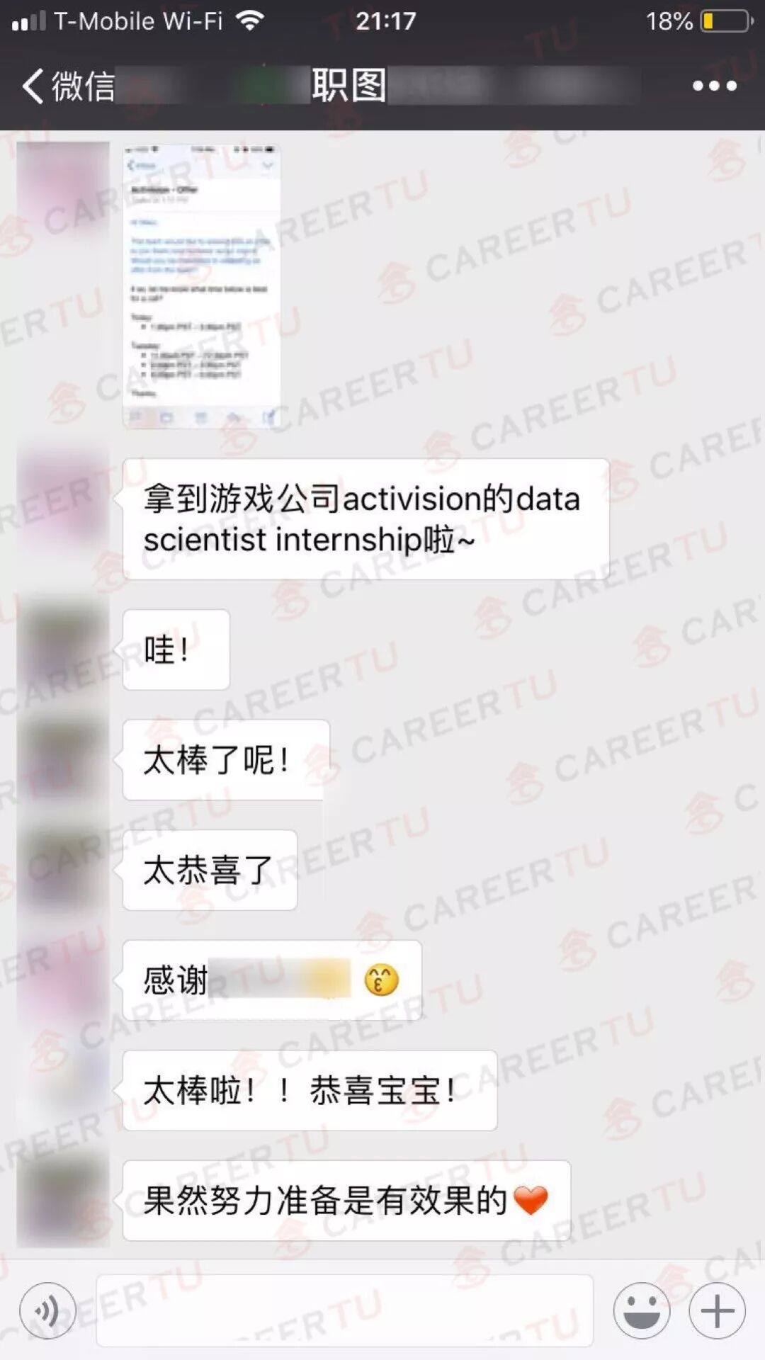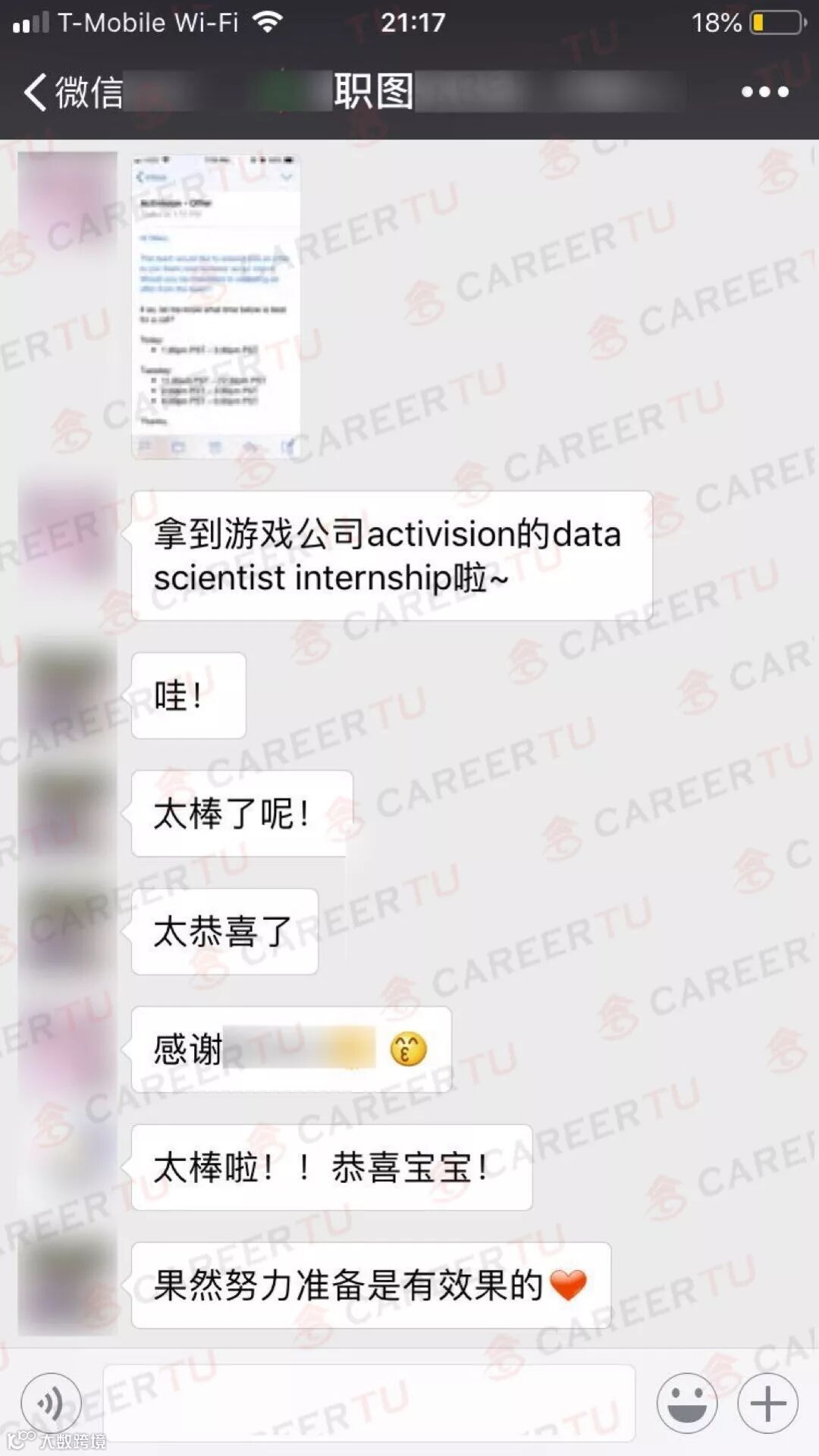 Open Day就是锦鲤本人,在参加完上一次的Open Day之后,N同学就拿下了游戏公司Activision的Data Scientist Intern Offer. 除了幸运,当然也是N同学和职图教学组一起努力的结果。