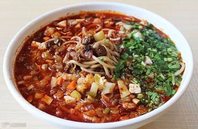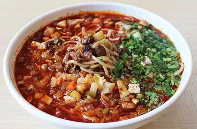 羊杂碎也是榆林人喜欢的传统小吃之一,将羊杂碎与各种调料、配菜混合共烩,再倒一层油炸辣椒,味道香辣可口。