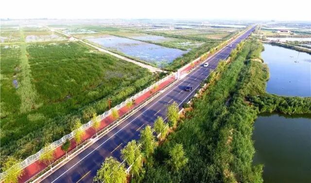 △穿过渭南黄河湿地公园的沿黄观光路渭南段(8月8日摄)。