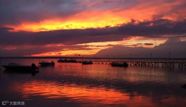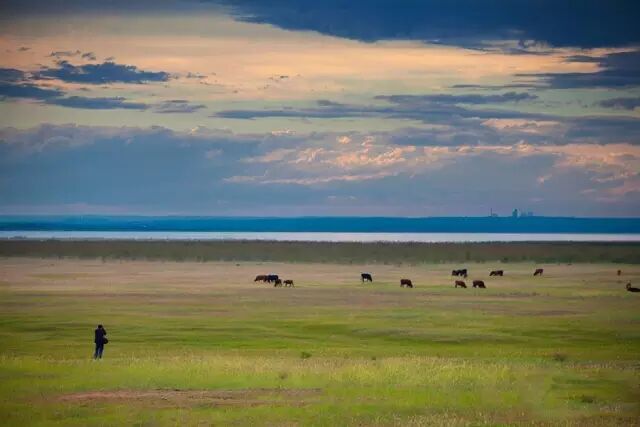 这是沙漠和草原交融之地。广袤的草原、壮阔的大漠构成了一幅人间奇特的瑰丽画卷。水域辽阔,烟波浩渺,蓝天白云,碧水黄沙,交相辉映,景色壮观。