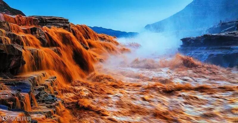 当黄河从青藏高原一路奔流而下到达秦晋大峡谷时,由于黄河水携带了很多的泥沙,这里也成为了世界上唯一的金黄色瀑布。