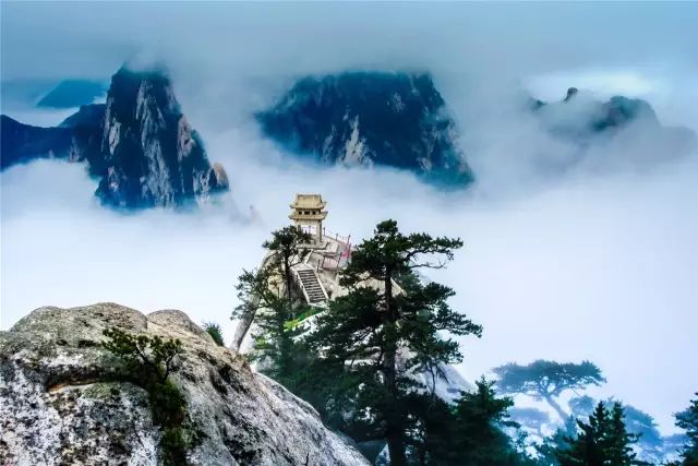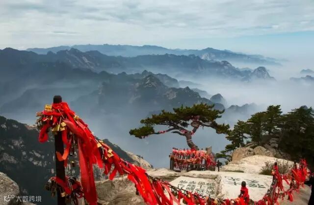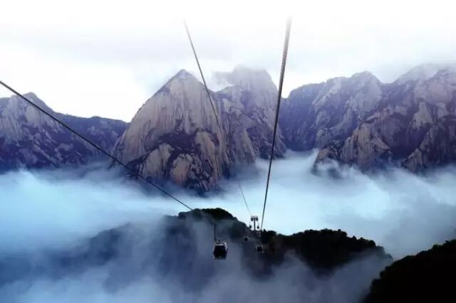 华山风景美不胜收,乘坐西峰索道,感受穿行在云海之中的神奇境界。