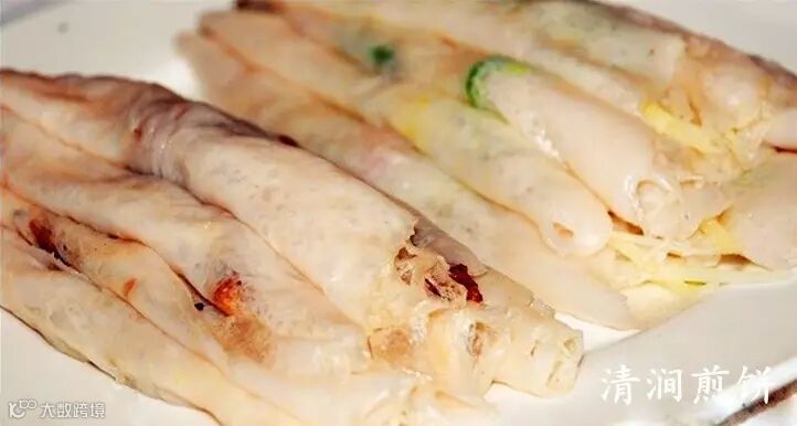 清涧煎饼状若朗夜之圆月,晶莹如白雪,轻薄似蝉翼,柔韧绵冽,其味沁人心肺,过口难忘。用荞麦做成,极为好吃。