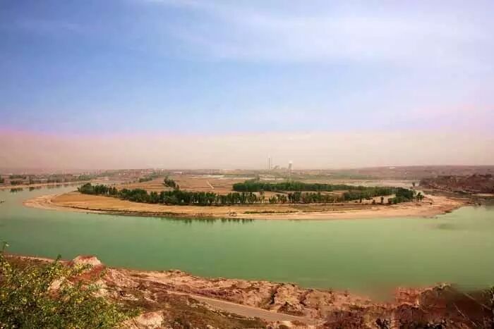 府谷这里的黄河,不是黄色的而是绿色的。用当地人的话说,黄河天下九十九道湾,道道湾水向东流,唯有府谷境内黄河向西流。