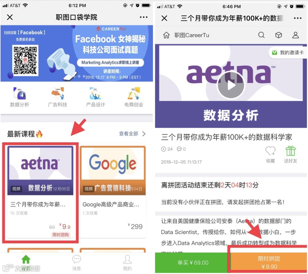Data Analytics 求职课程现在已经上线职图口袋学院啦!现在两人拼团,观看课程只需要9.9元,2刀不到,限时两天超值优惠。