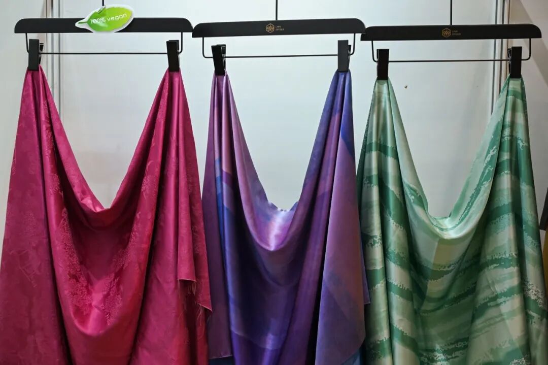 展会现场,以研发为导向的材料商云集、琳琅满目的革新产品不负买家千里迢迢赶于此实现采购双向奔赴!来自美国的伊士曼带来注册商标品牌Naia™ Renew,其纤维由60%可持续来源的木浆和40%认证回收废料制成;台湾纺织业拓展会携领纖宇企業、偉特企業及宏洲纖維工業首次参加PV深圳展,现场带来可持续环保面料、功能运动面料及石墨烯可染纤维、生物可降解纤维等;益彩时尚则呈现自主研发品牌MIX-TA®的时尚环保面料并携同法国提花织物Dutel Creation齐亮相;灵蛛、唯佳、昕绅、华夏、协孚专注环保皮革制品,致力于提供不含DMF和零残忍的纯素皮革代替品等。