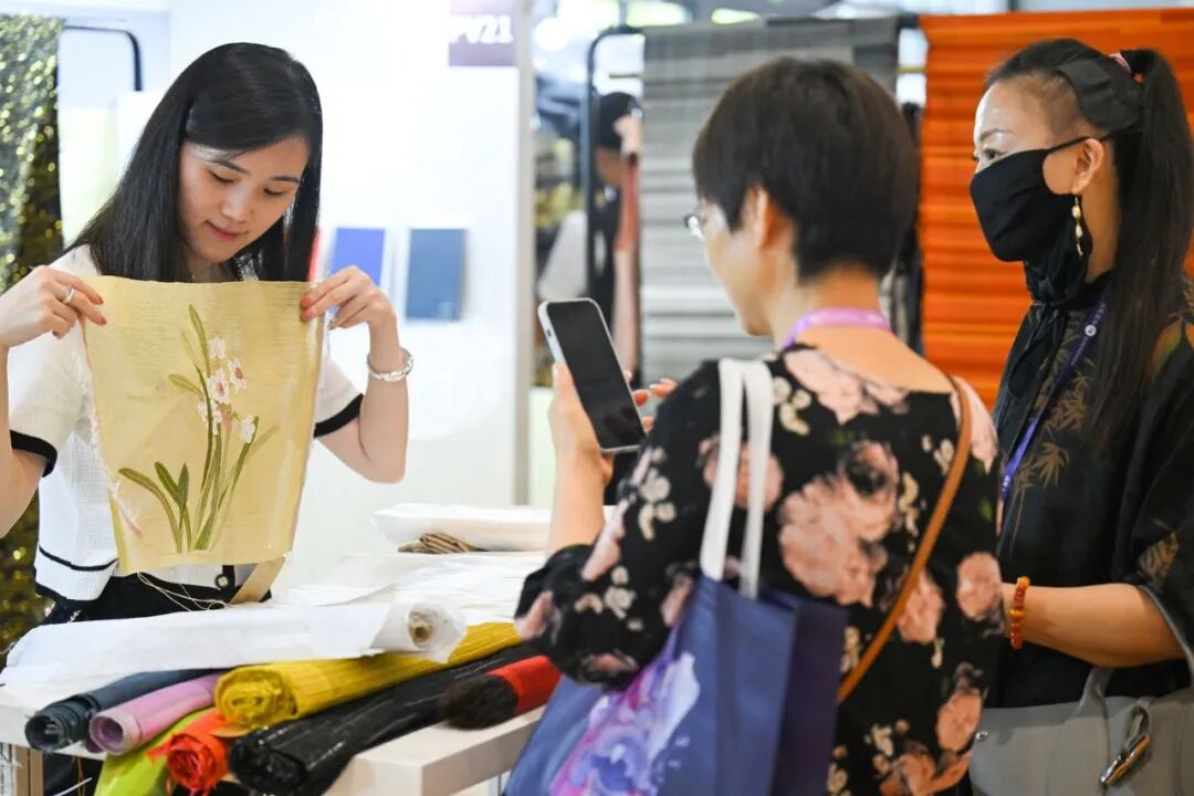 于是,在PV深圳中国传统手工艺区内,我们得以近距离鉴赏:新刻传承并发扬了拂梭千年、通经断纬的缂丝技艺,实现了缂丝服饰面料的多样性;鼎盛丝绸攻克古老织机与现代设备的兼容的难题,用独特的宋锦织造工艺完美呈现新中式美学;佳德尚品旗下的集彩工作室不断尝试面料在时尚上的创新,让传承千年的鱼子缬真丝重新进入我们的生活。
