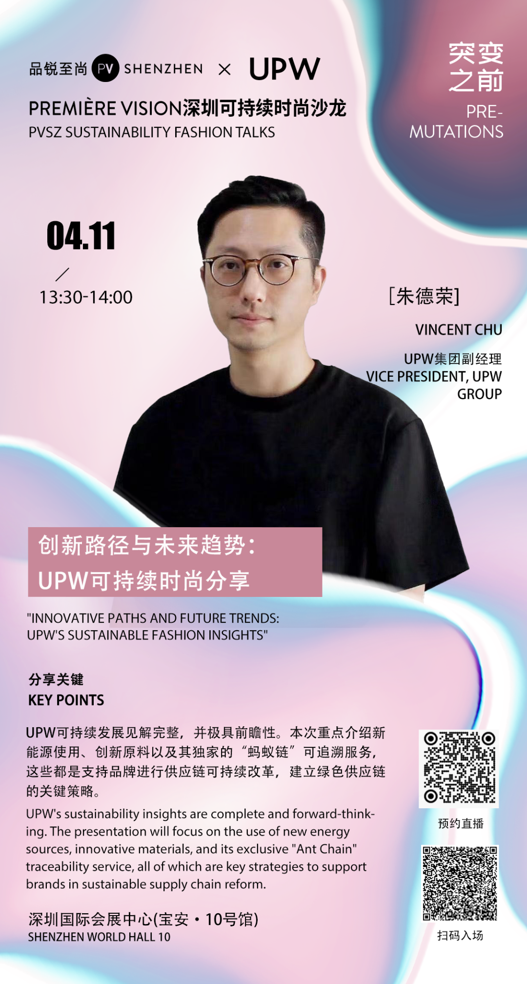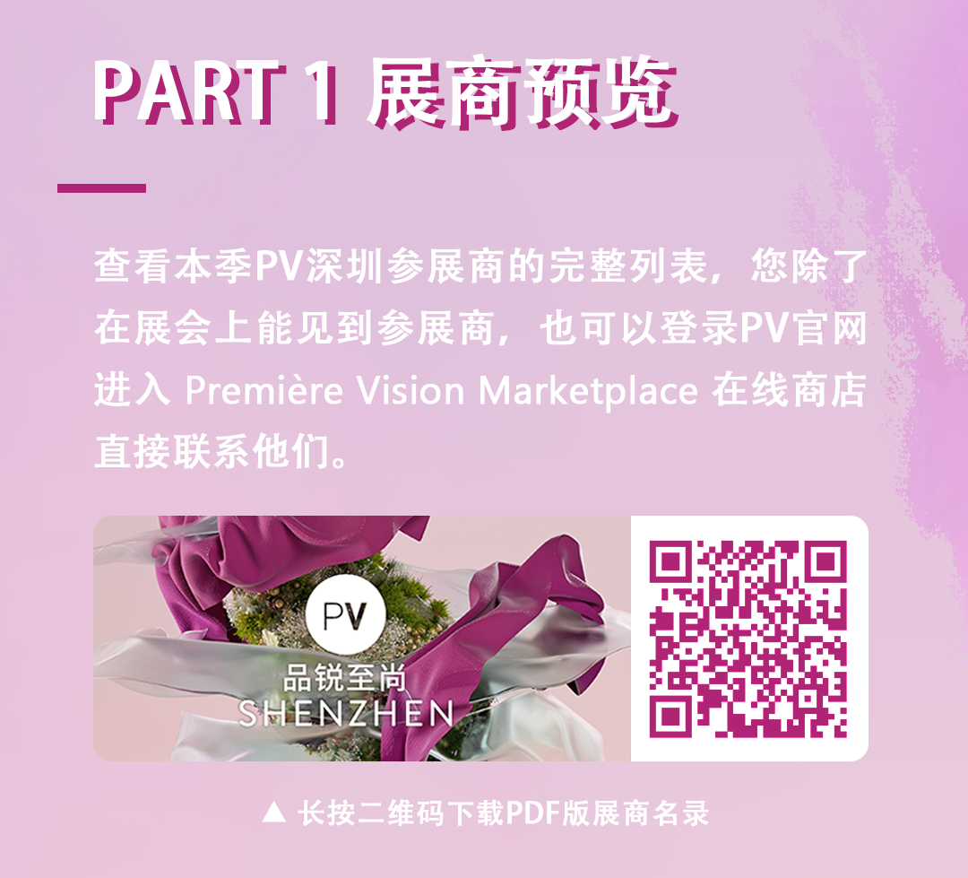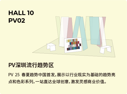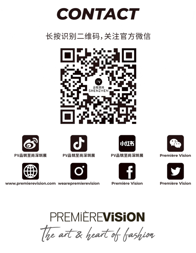 作为PV全球生态系统下重要目的地的延展,PV深圳,一场与中国时尚决策者并肩同行的创意与可持续材料盛会,聚焦时尚产业在中国循环经济态势下的全新机遇。通过链接国际和中国以研发为主导的材料商、制造商及品牌、设计师,PV深圳为“金字塔顶端”的时尚供应链和设计力量搭建灵感枢纽与商贸交流盛会,助力先行者在中国不断增长的高端消费市场和由量转质的发展总规划中,开辟蹊径,铸造壁垒,推动中国时尚产业从专业上、根源上的可持续生态变革。