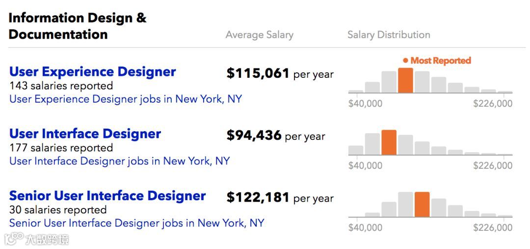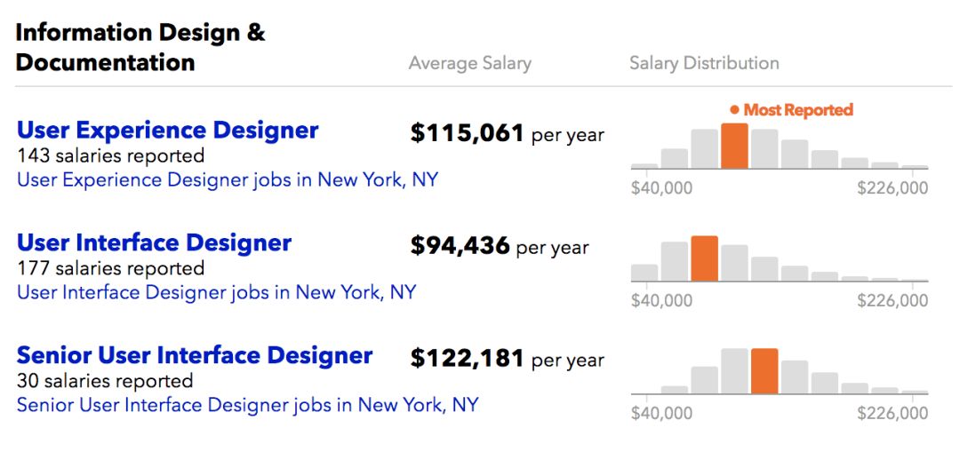 近些年,产品设计(UXUI)这个专业进入大众视野,成为高薪并且有趣的职业之一。在Indeed上面,你可以看到纽约地区的UXUI设计师,工资水平在90K - 120K,起薪要比起其他专业毕业后要高出不少。