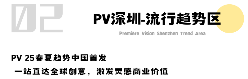 除了PV深圳流行趋势区、PV深圳可持续时尚焦点区、PV深圳可持续时尚沙龙三大核心活动,本季PV深圳还联合兰精打造运动时尚“精”选区,从源头为行业提供专业的时尚运动产品。现场您将通过展览展示与系列活动获取Première Vision SS25颜色、材质、环保3大核心指引,获取灵感的同时,通过与真正的材料专家和时尚经营者同行,为品牌阶段发展提供兼具国际视野和本土角度的重要内参。