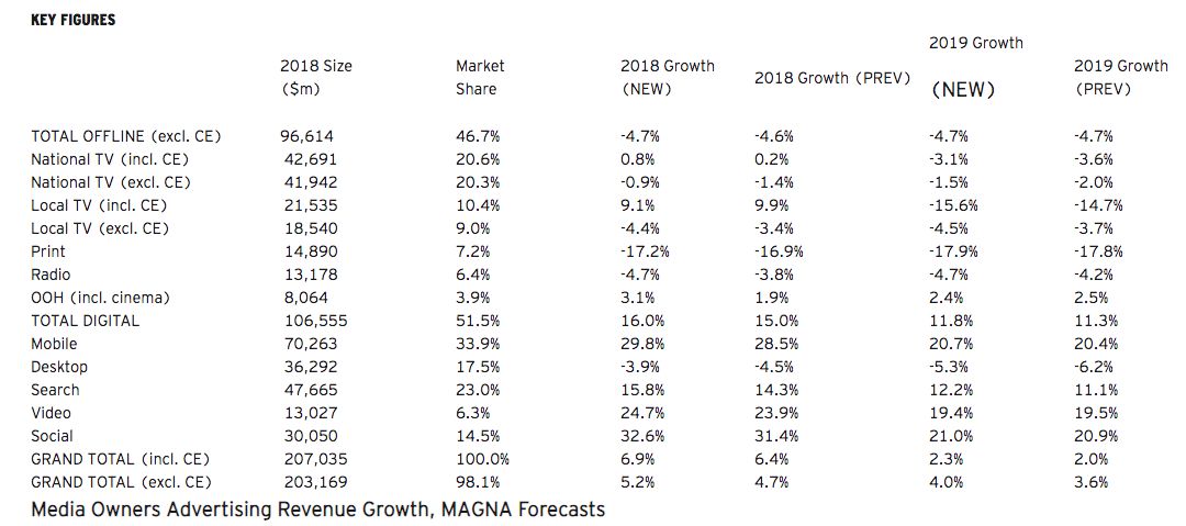 Magna最近发布了对2018年和2019年美国广告收入的评估和预测。该报告涵盖了所有主流广告和媒体类别,包括现在最流行的数字媒体以及传统媒体。