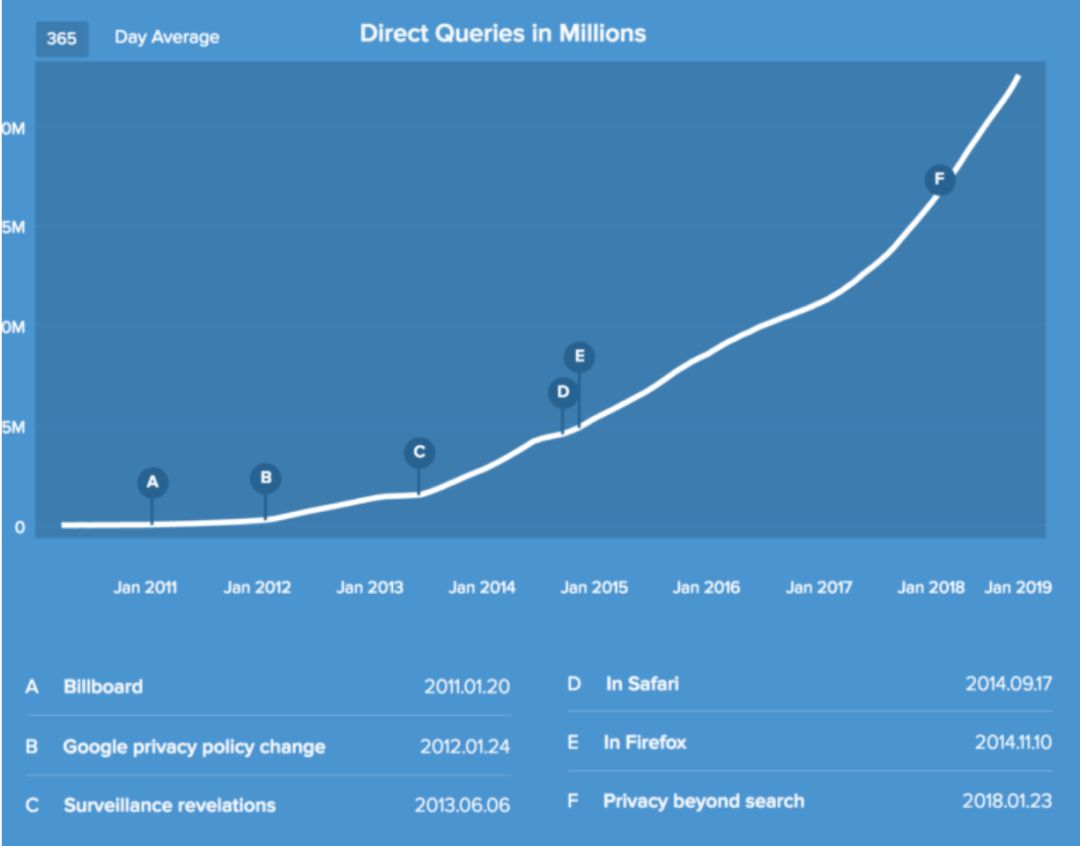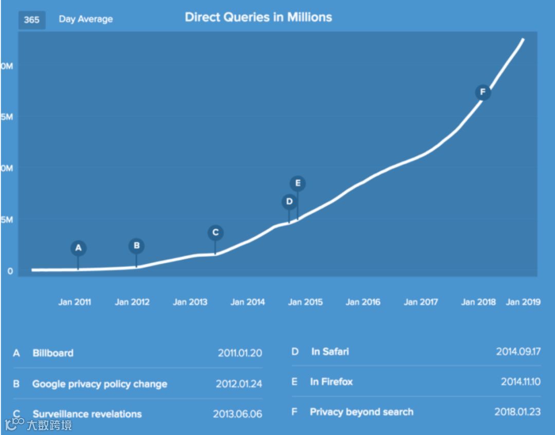 DuckDuckGo的创始人加布里埃尔·温伯格(Gabriel Weinberg)说“我们一年来的增长率一直保持在50%左右,因此在宏观层面上来看这并不太令人惊讶,只是增长的比列越来越大!”