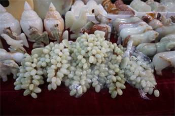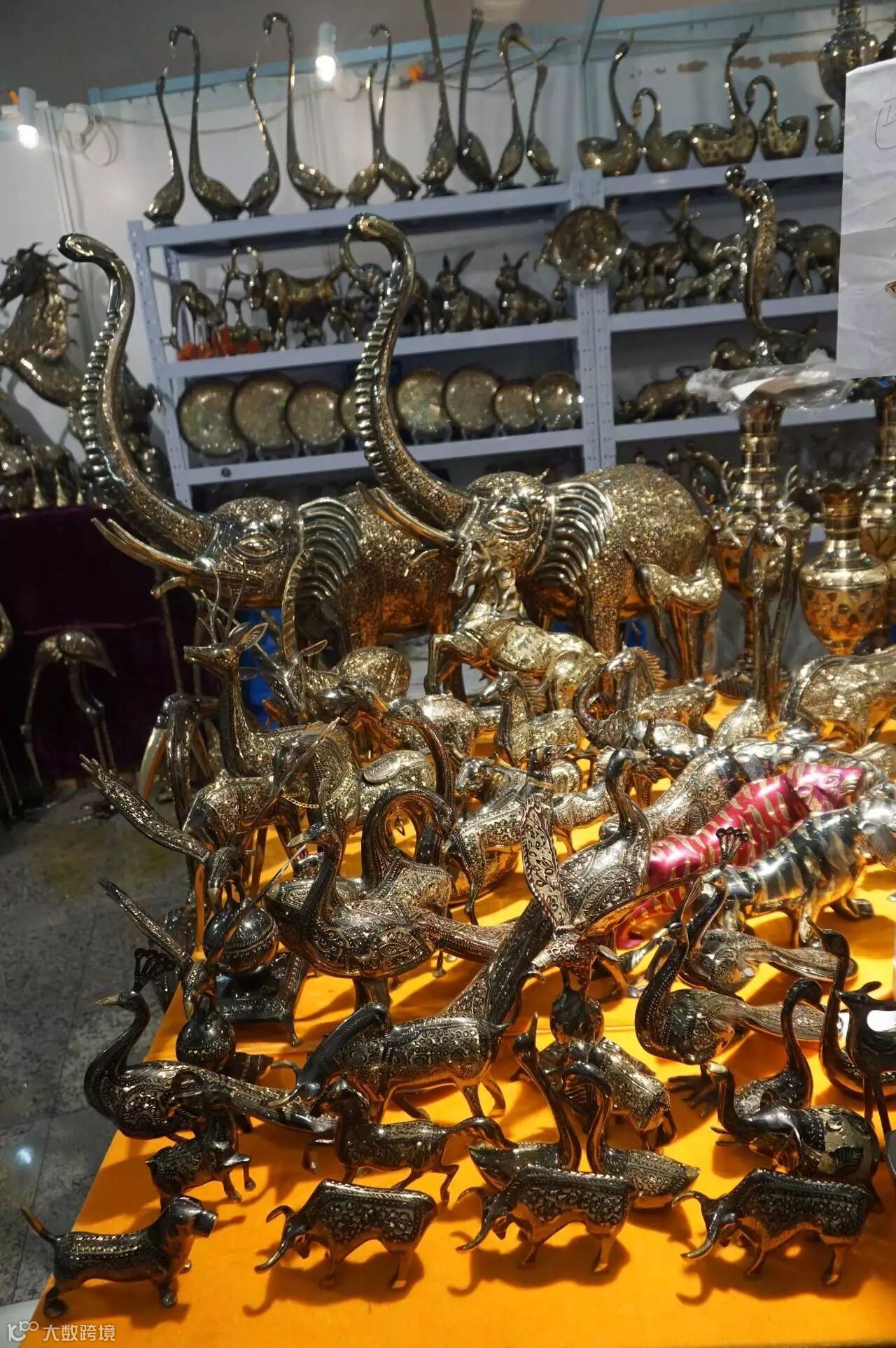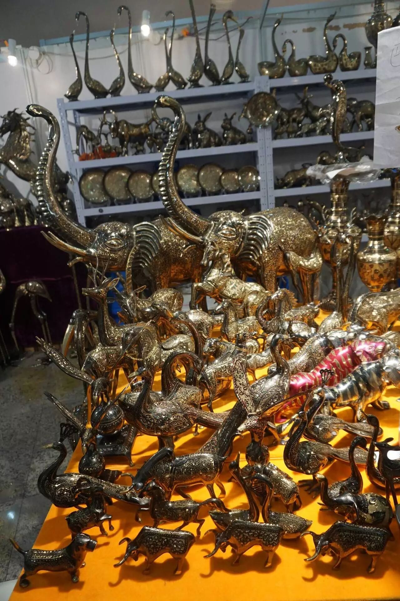 告别了一楼的珍稀动物,小编来到了充满异国风情的A馆二楼展示区,一上楼就被中东各国展位上展品的珠光宝气所吸引,有晶莹剔透的玛瑙和玉器制品。还有制作精美细腻的巴基斯坦铜制品。