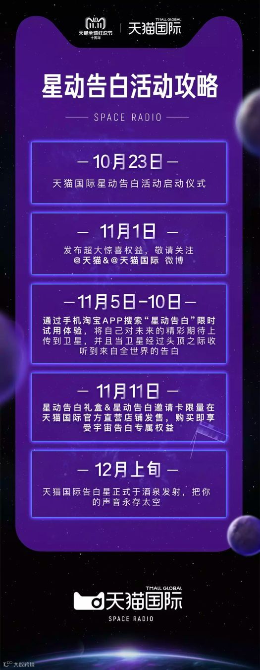 因此天猫国际在这个契机,将发射卫星向中国及海外的亿级消费者征集“告白”!