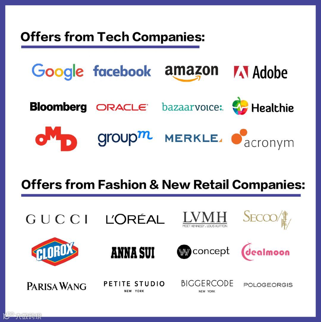 这些合作企业中,不乏新兴的时尚品牌,融资上亿的电商平台,以及老牌的时尚企业,对于想要获得实习的同学们而言,充满了机会和挑战!