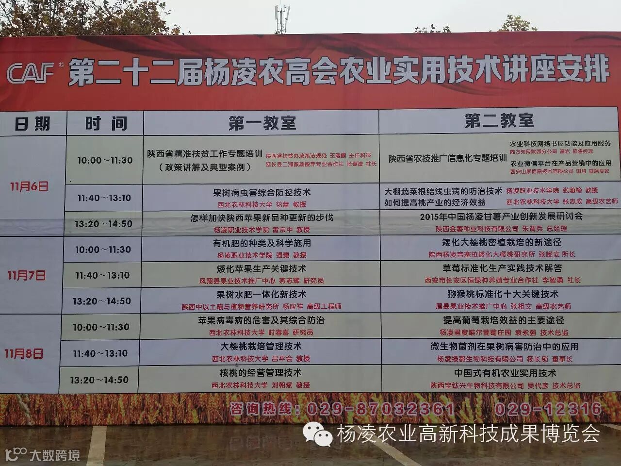 11月6日,第二十二届杨凌农业高新科技成果博览会农业实用技术讲座开讲了。上午十点,《陕西省精准扶贫工作专题培训(政策讲解及典型案例)》和《陕西省农技推广信息化专题培训》分别在杨凌政务大厦公共资源交易中心第一第二教室进行。