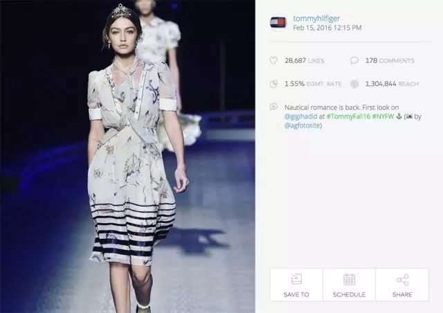 就拿最受女性和时尚行业欢迎的Instagram来举例,美国休闲潮牌Tommy Hilfiger首次在纽约秀场内开设Instagram摄影区,为Instagram红人指定专业摄影师拍摄其看秀活动,通过网络红人获取其粉丝对品牌的关注。