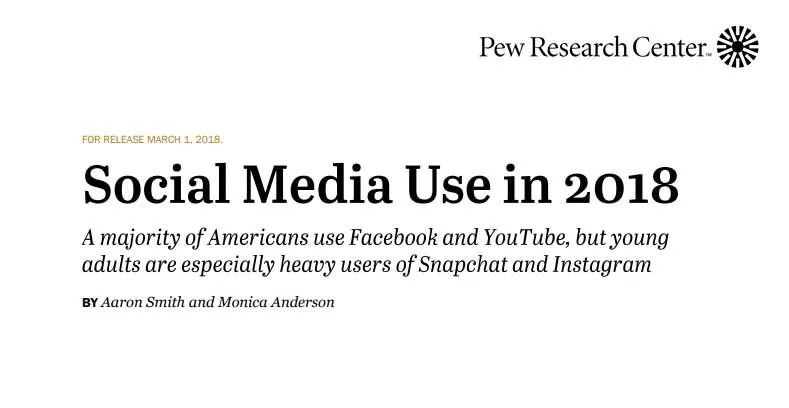 最近,研究中心对来自全美的2千多位不同年龄、性别及职业的18岁及以上的成年人进行了抽样调查,并发布了《2018社交媒体使用报告》。报告中详细介绍了美国社交媒体用户的6大现状,为品牌描绘了清晰的社交媒体用户画像。