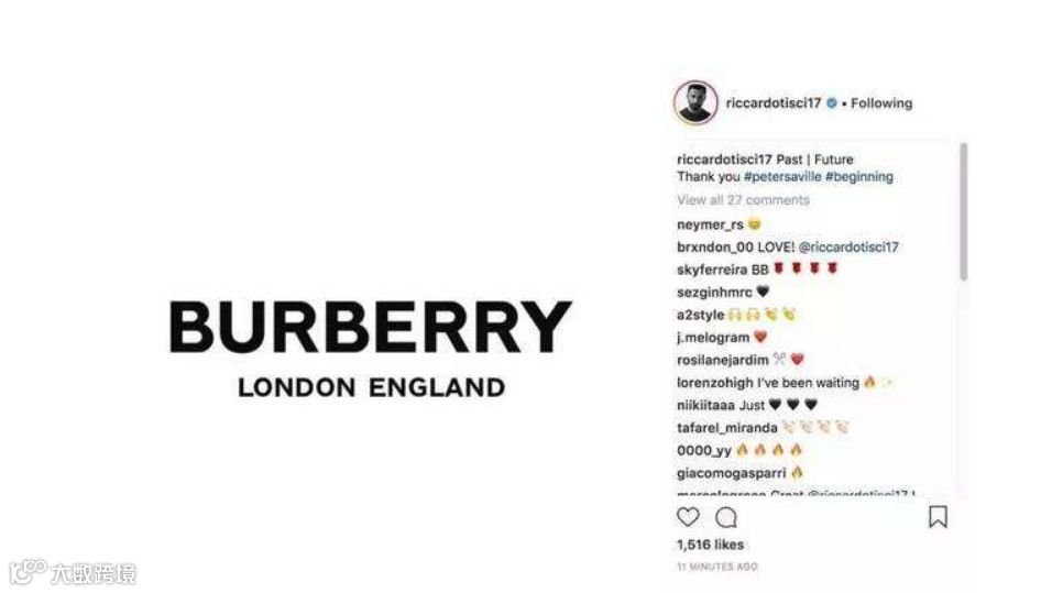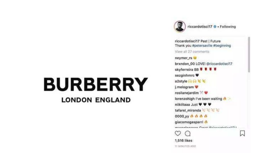 比如,使用这个平台来促进其时装秀和消费者预期构建。最近的一个大动作是,巴宝莉的创意总监是最先爆出新Logo,通过Instagram实时呈现给全球网民,舆论能带动品牌更多的传播,也是非常好的创新思维。